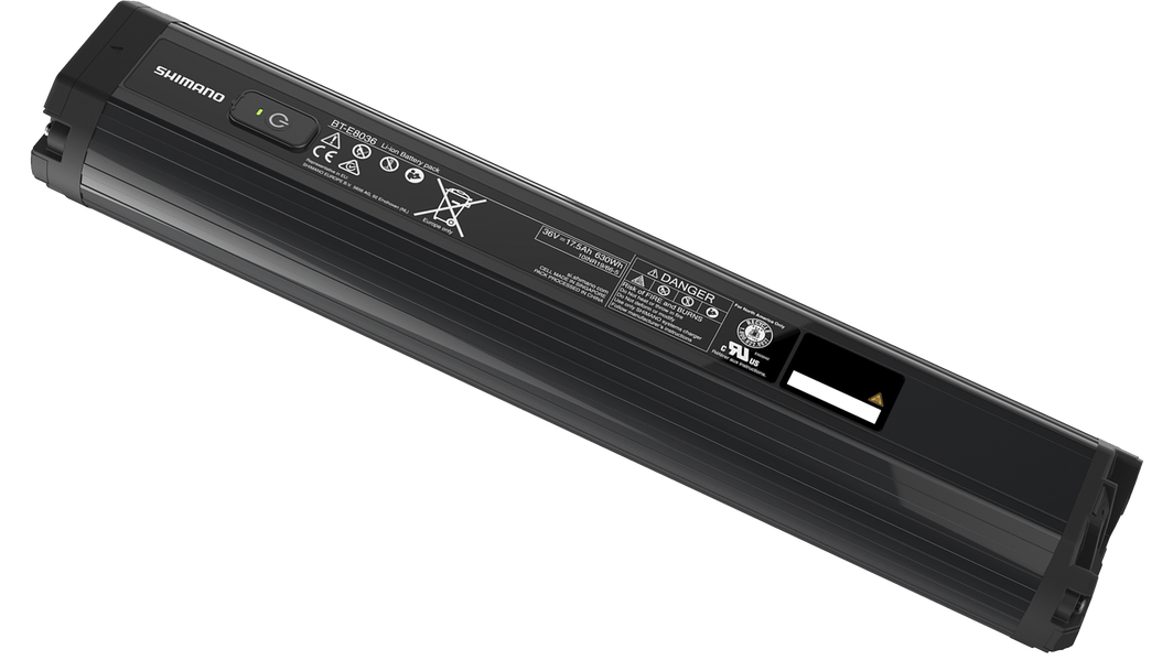 Baterija BT-E8036 je zasnovana posebej za sistem STEPS podjetja SHIMANO in je gladko integrirana v spodnjo cev, njena zmogljivost pa je 630Wh. Baterija je elegantno oblikovana, se hitro polni in dlje časa ohranja svojo največjo zmogljivost v celotni življenjski dobi.