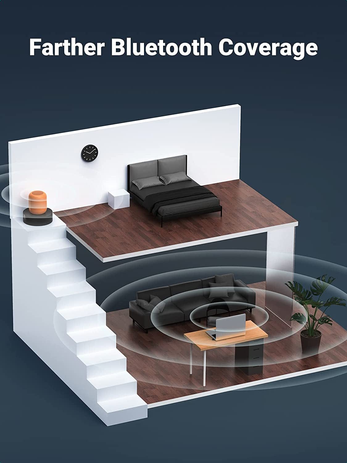 Bluetooth ključ UGREEN V5.3 za osebni računalnik uporablja najnovejši 5.3 Bluetooth, pomaga osebnemu in prenosnemu računalniku, opremljenemu s funkcijo Bluetooth, ter se enostavno poveže z napravami Bluetooth, s hitrejšo hitrostjo prenosa, večjo učinkovitostjo in nižjo zakasnitvijo.