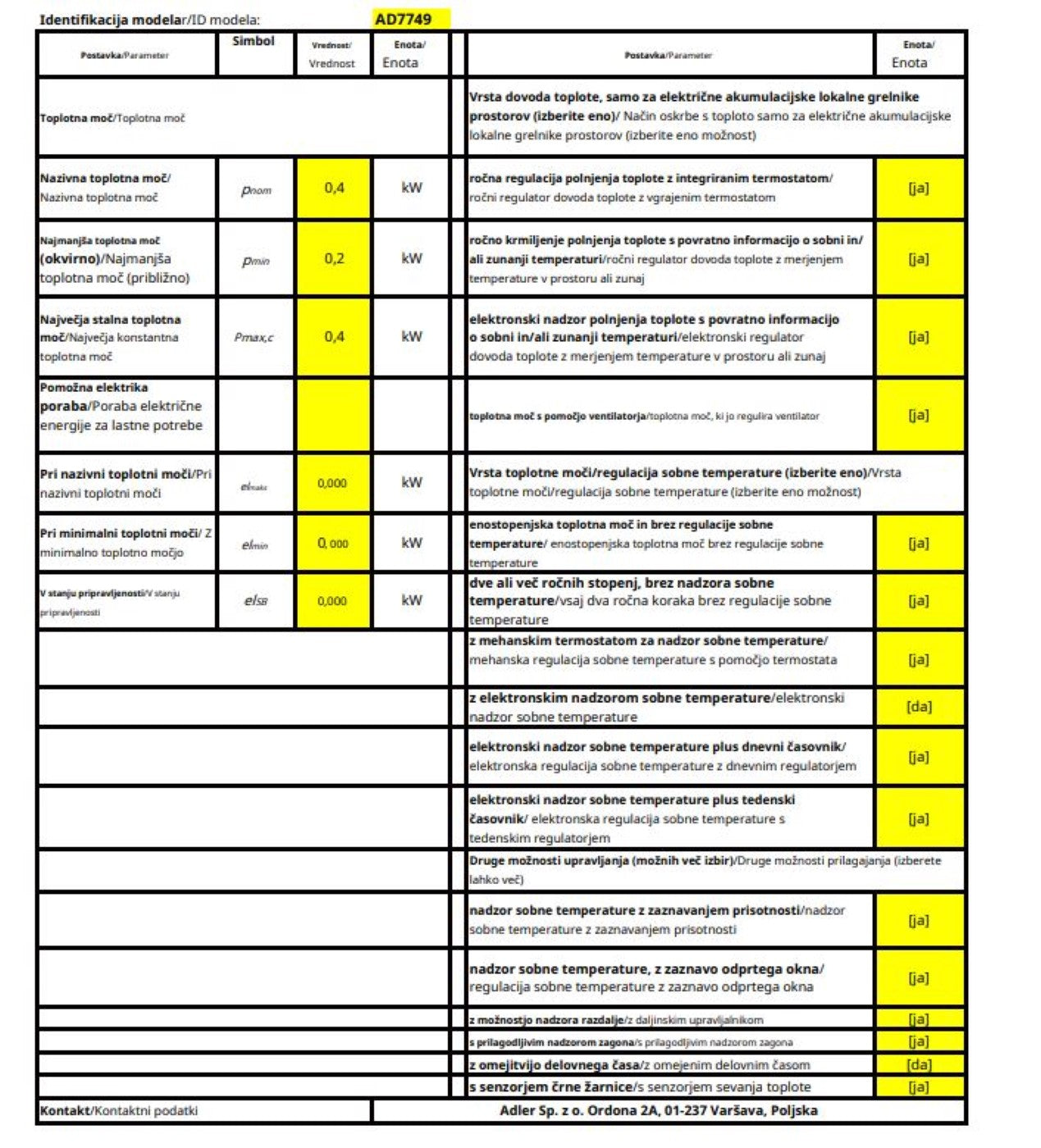 Specifikacije za Adler AD 7749 Thermofan - prenosni grelnik so naslednje: