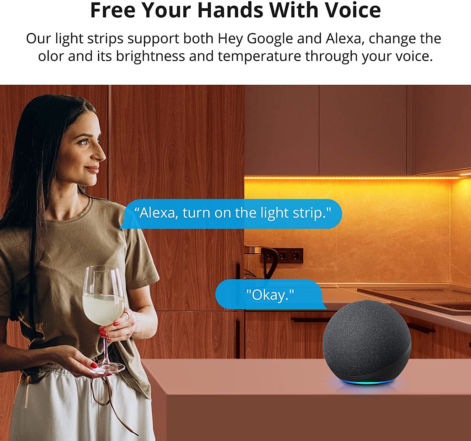 - Glasovni nadzor – deluje z Amazon Alexa, Google Home Assistant, SmartThings + IFTTT