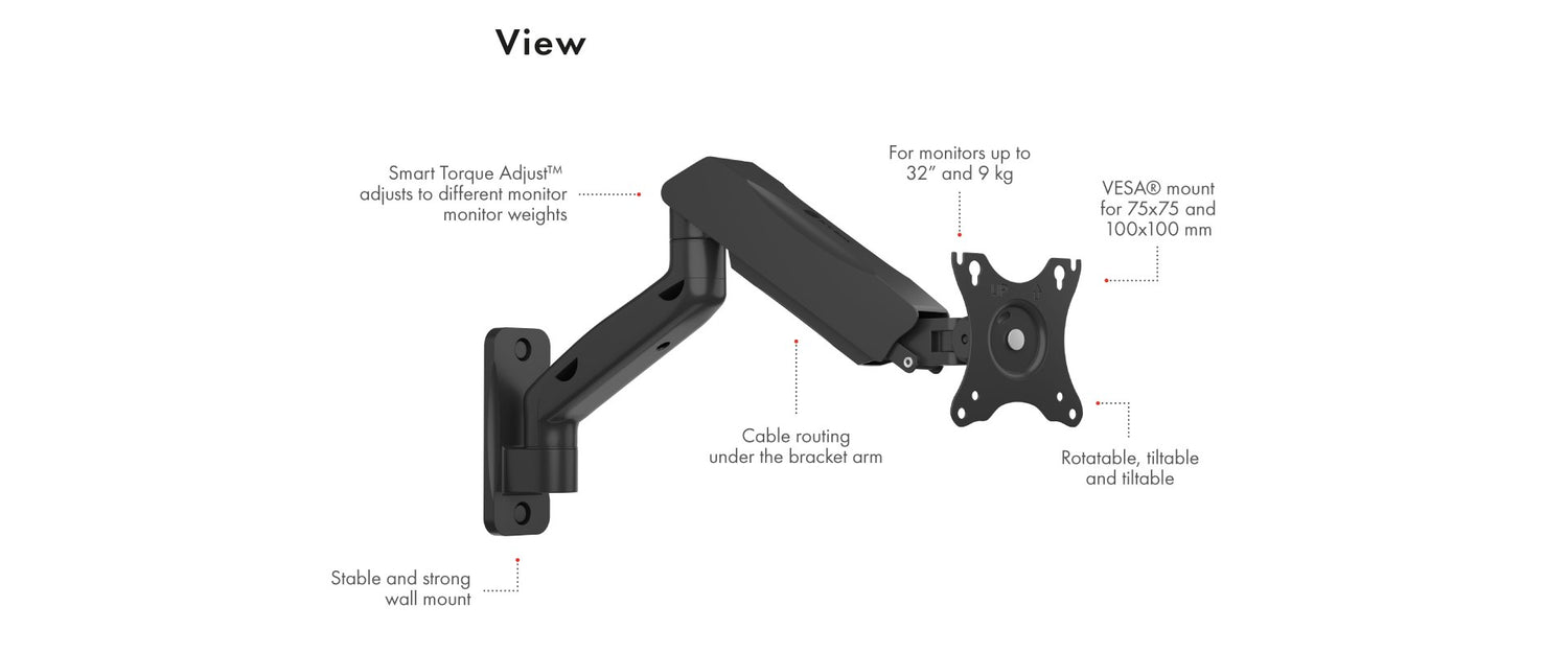 Montaža na steno: stensko držalo za monitor pomaga izboljšati vaš dnevni potek dela. Ustvarite bolj prostorno vzdušje, zagotovite ergonomsko udobje in boljšo držo