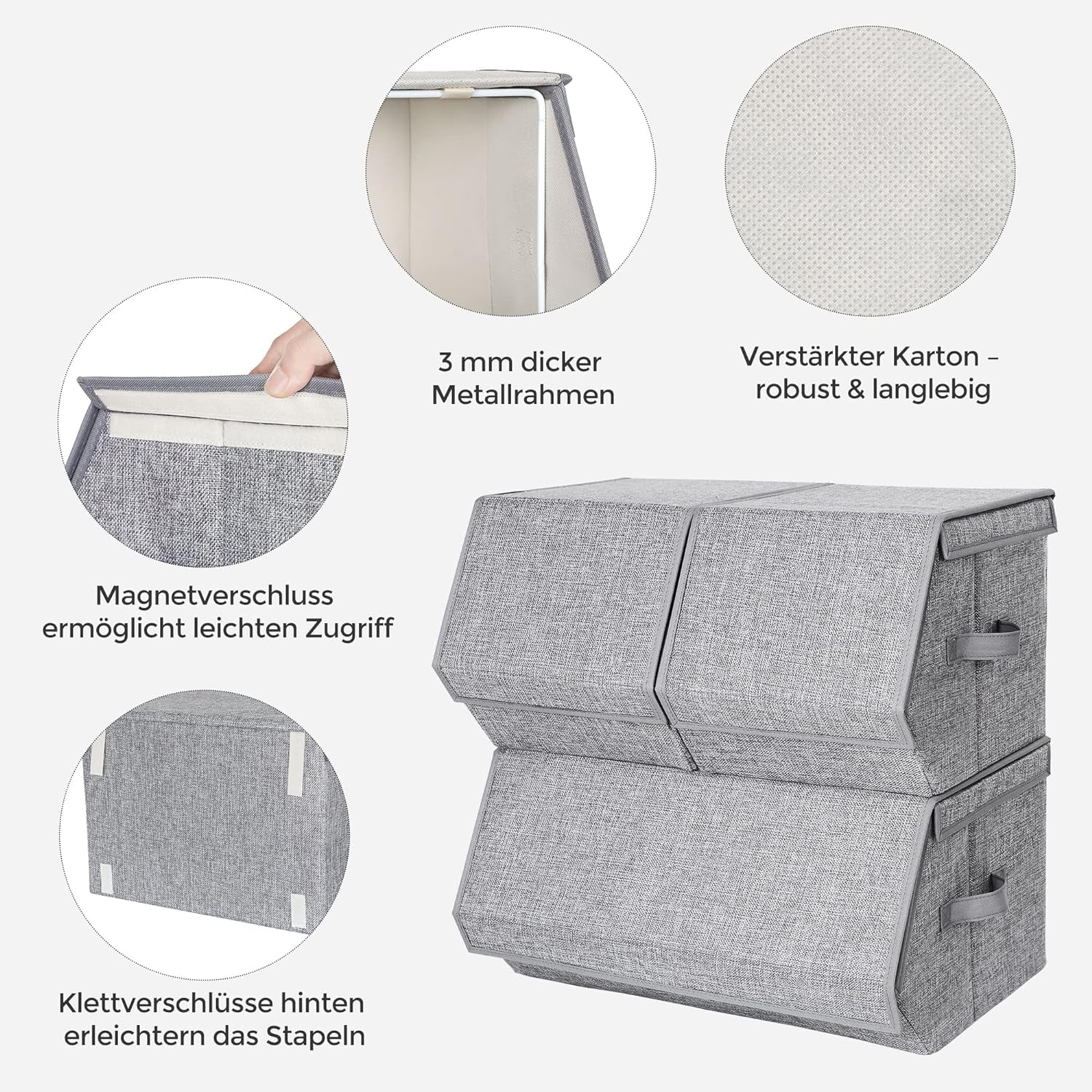 Songmics komplet 3 škatle za shranjevanje s pokrovom, ki jih je mogoče zlagati, kovinski okvir za igrače, magnetno zapiranje za oblačila, igrače in knjige, siva, RLB12GY.