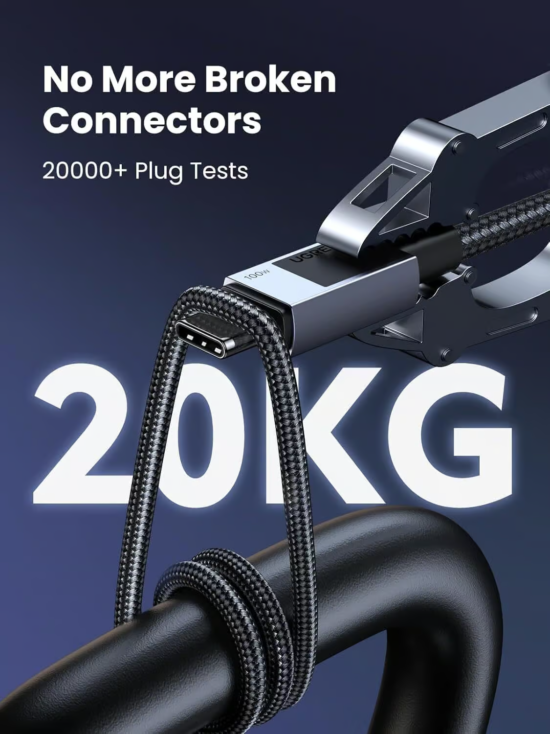 Ta hitri polnilni kabel USB C na USB C uporablja tehnologijo laserskega varjenja za ojačitev vmesnika iz aluminijeve zlitine, kar zagotavlja vzdržljivost za več kot 20.000-krat priklopa in odklopa; z zunanjo plastjo iz najlonske pletenice je prožen in odporen proti zapletanju, dolgotrajen in trpežen.