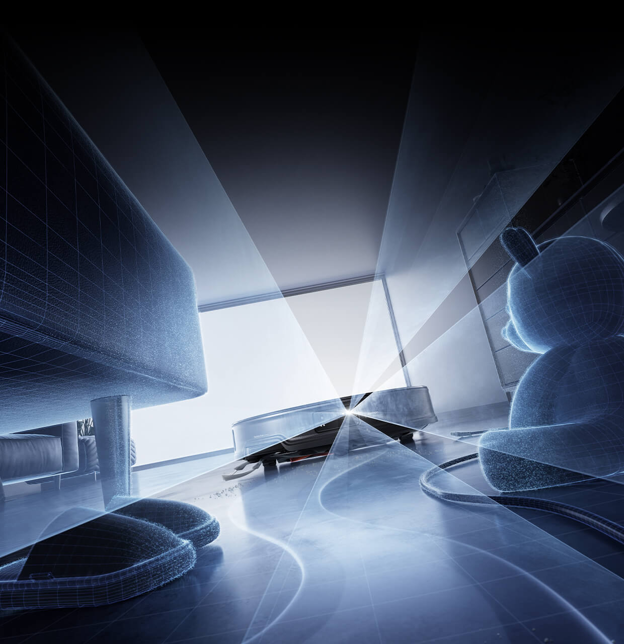 Sodobni 3D senzorji in RGB kamera omogočajo natančno vizualno zaznavanje, zaradi česar se robot učinkovito izogne kablom, čevljem, igračam in drugim manjšim predmetom.