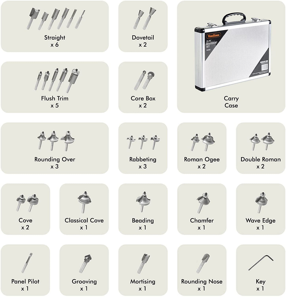 VonHaus 35-delni set nastavkov za rezkarja 6mm