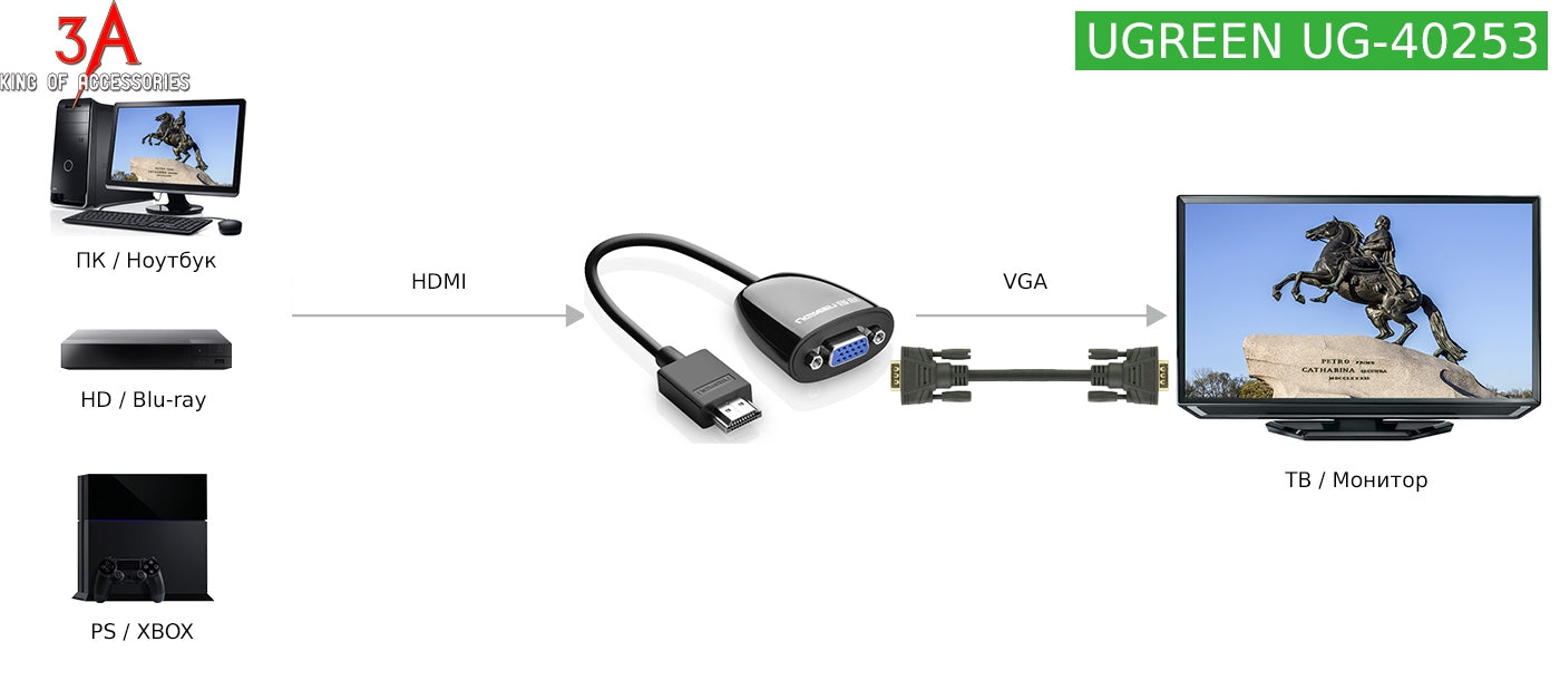 Ugreen HDMI na VGA adapter črn - box