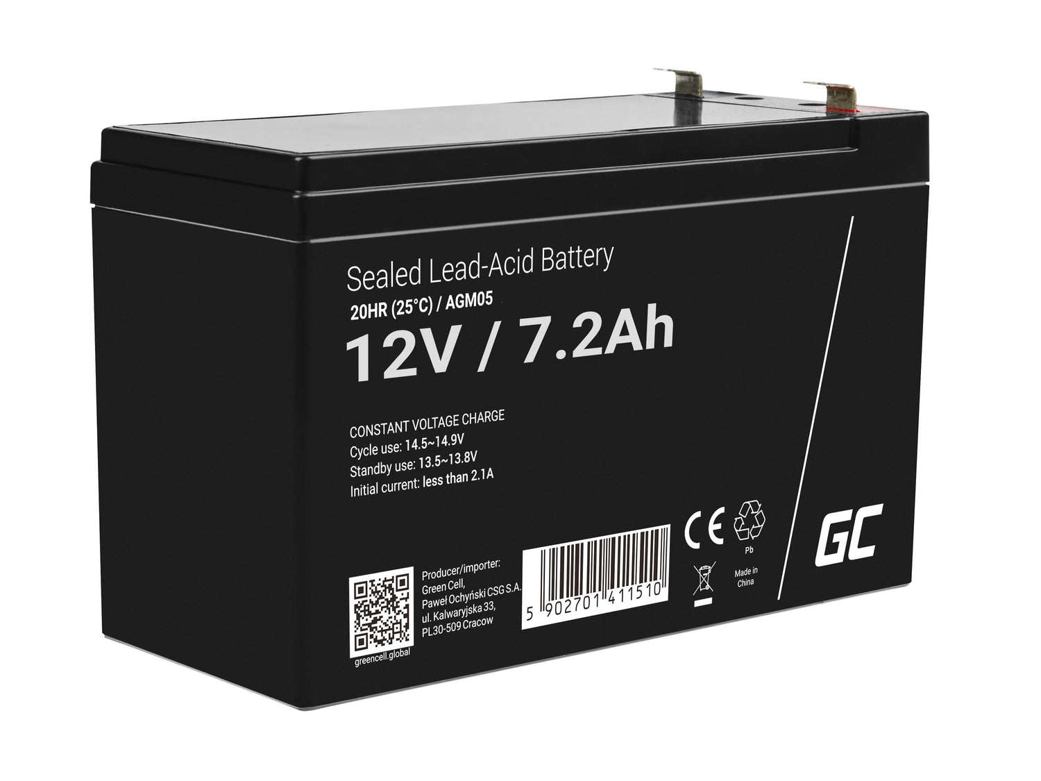 Green Cell AGM VRLA 12V 7.2Ah bez održavanja Baterija za alarmni sustav, blagajnu, igračke
