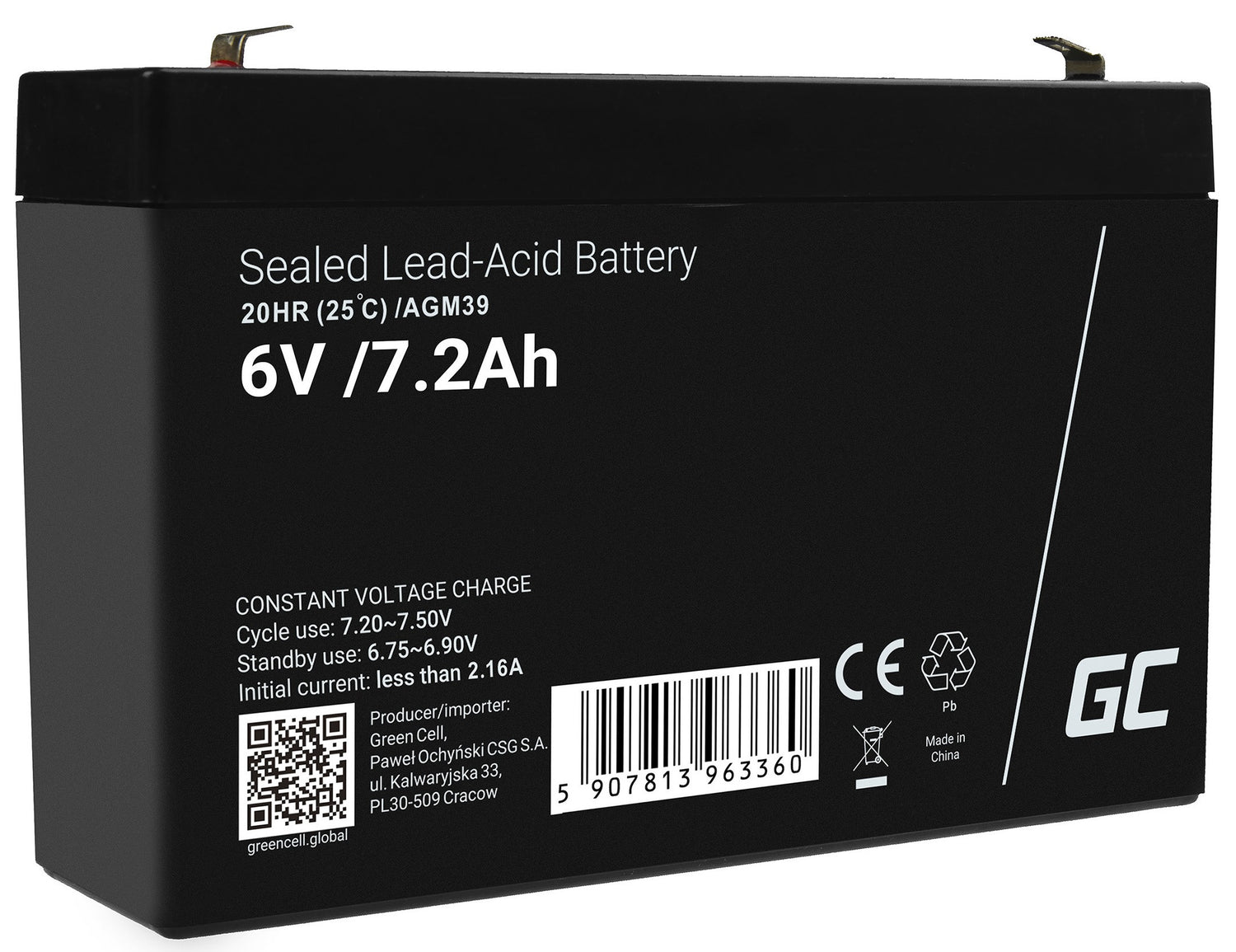 Green Cell AGM VRLA 6V 7.2Ah bez održavanja Baterija za alarmni sustav, blagajnu, igračke