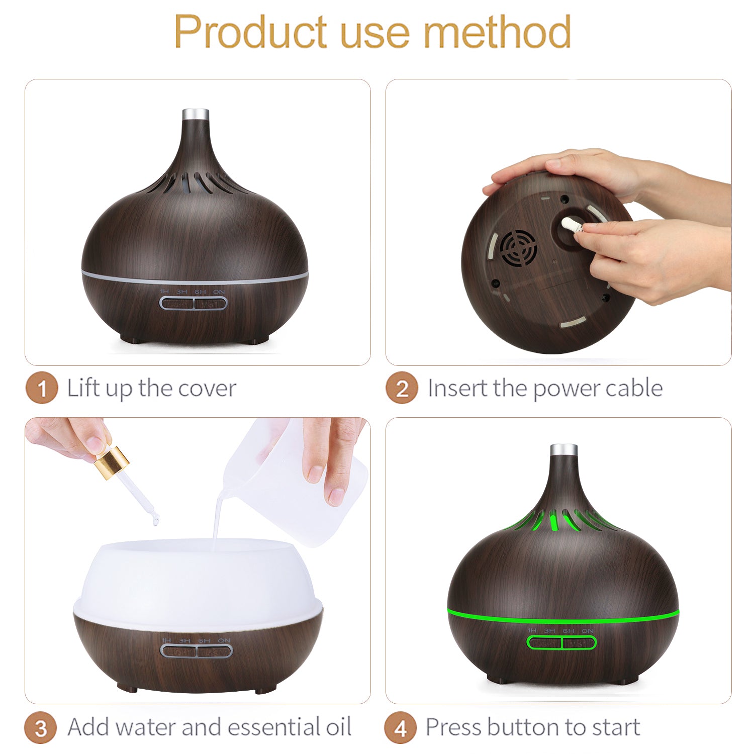 Oljni difuzor je primeren za uporabo doma, v pisarnah, telovadnicah, studijih in terasah. Ima sodoben dizajn in je izjemno učinkovit in tih, zato ga lahko uporabljate podnevi in ponoči. Je priročen in majhen ter omogoča čas delovanja do 8 ur. Opremljen je z LED barvito osvetlitvijo in časovnikom.