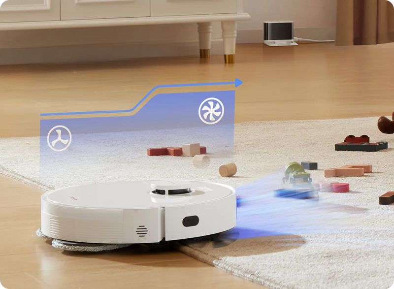 Ko sesalnik zazna preprogo in jo začne čistiti, tudi poveča moč sesanja, za izredno čistočo.