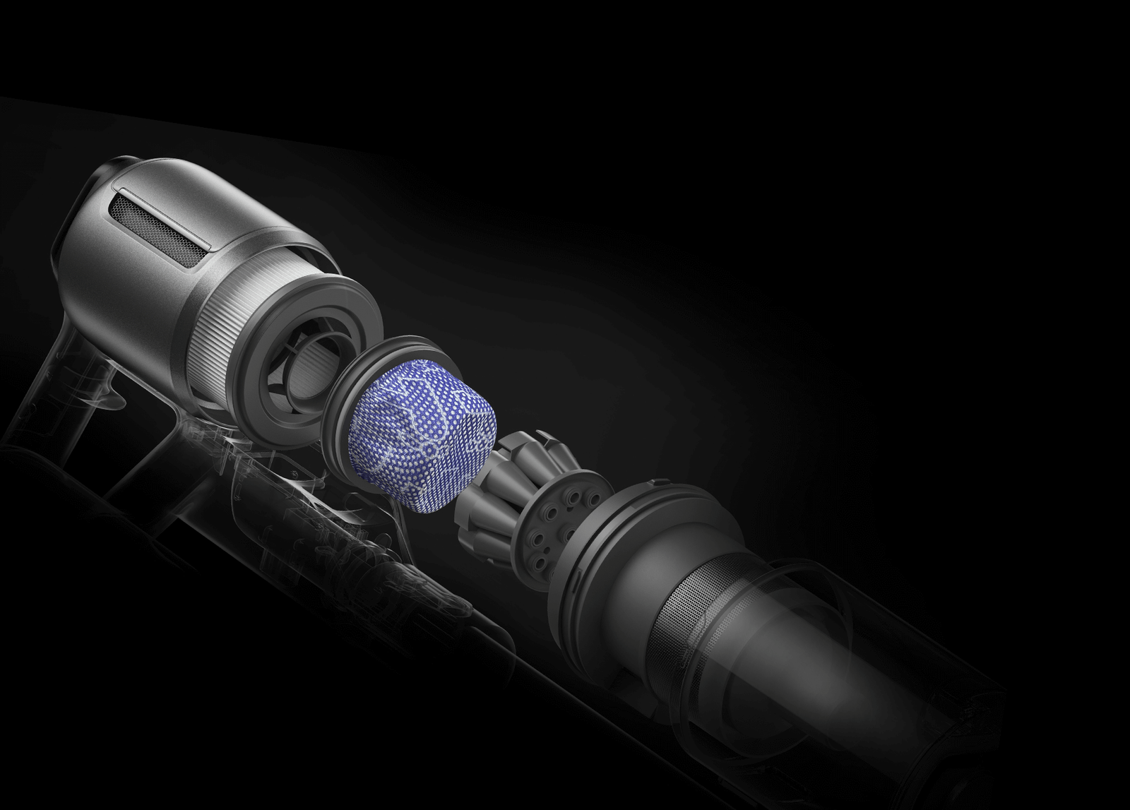 Sesalnik omogoča filtracijo delcev velikosti ≥0,1 μm*, s 99,99 %* učinkovitostjo celotnega HEPA filtracijskega sistema in 99,9 % učinkovitostjo filtracije bakterij in virusov.