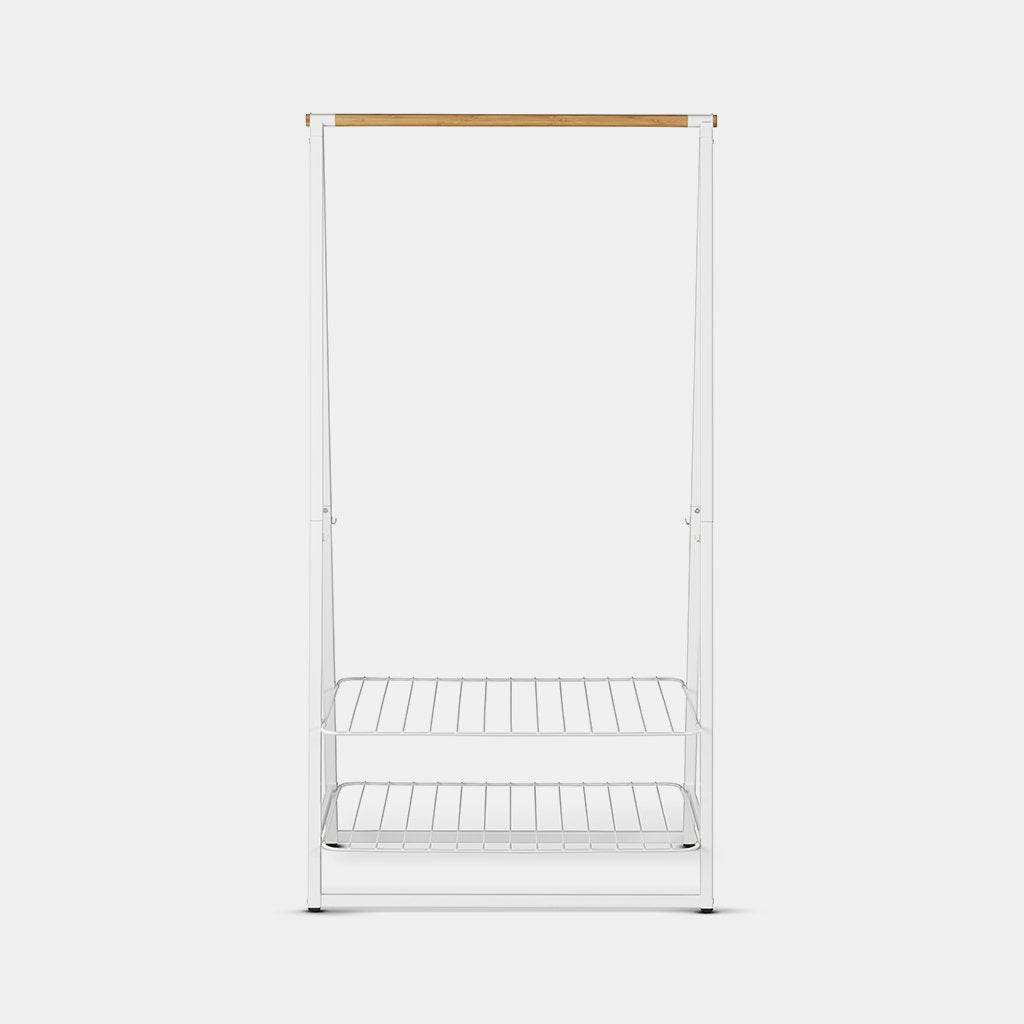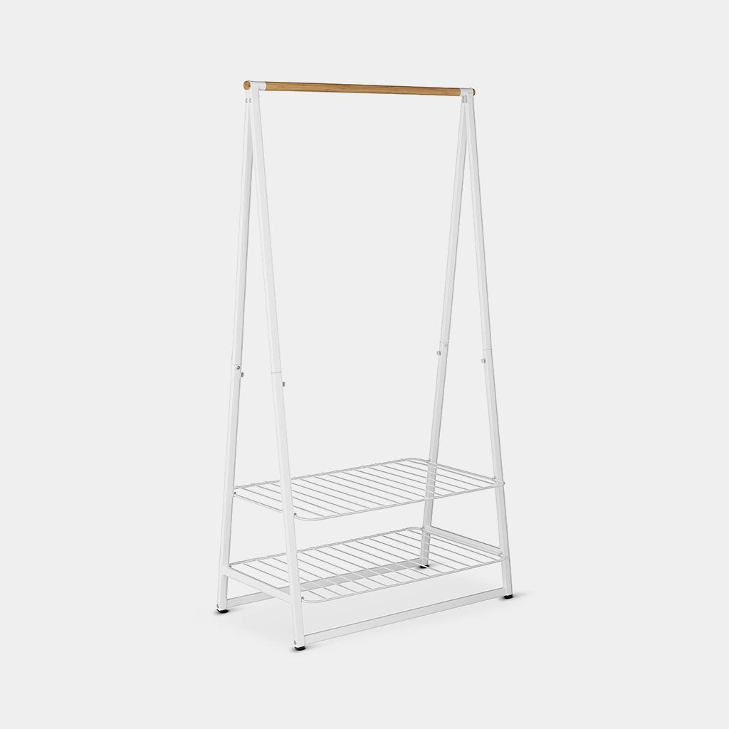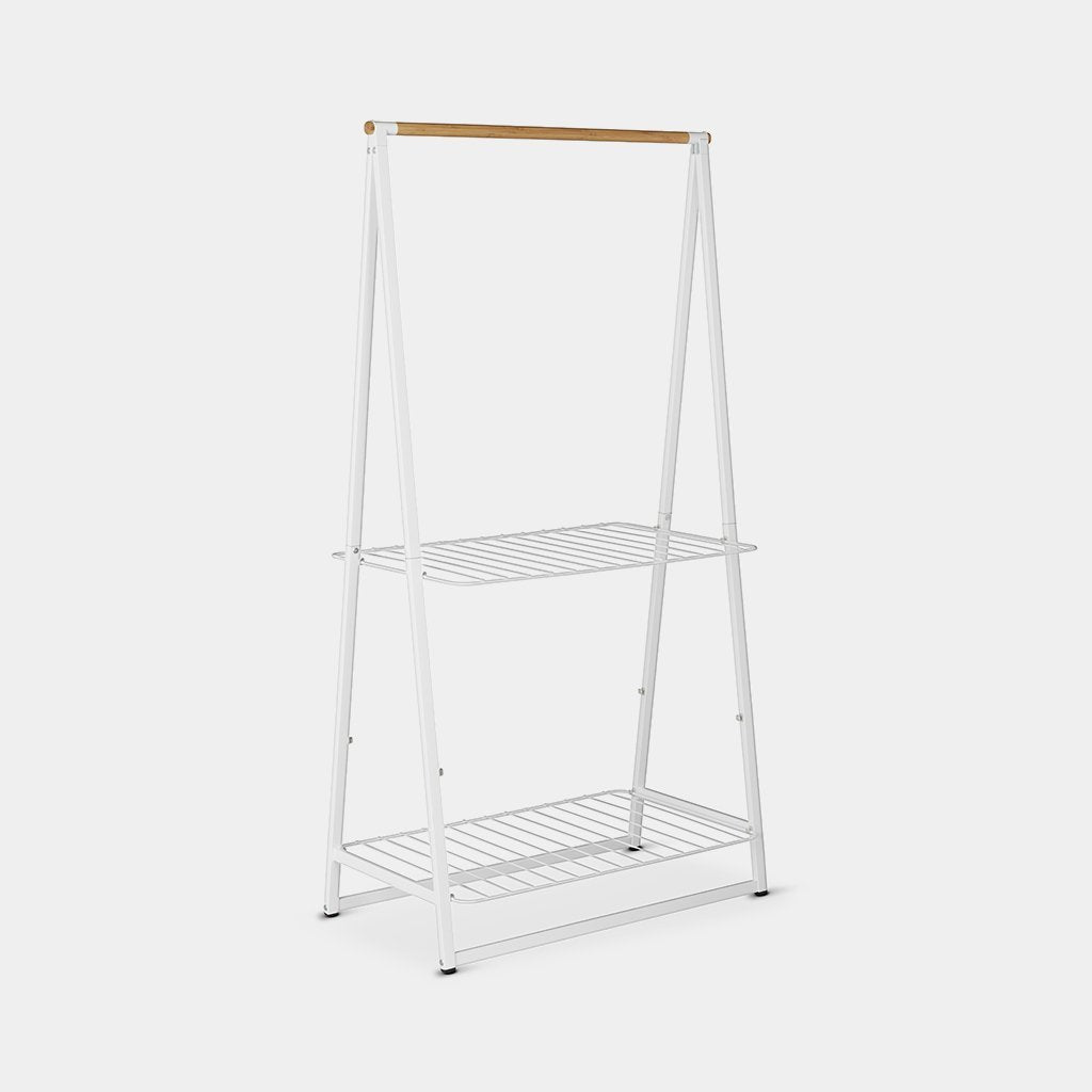 Brabantia stojalo za oblačila je primeren za vse, ki vam primakuje prostora za obešanje oziroma shranjevanje vaših oblek v omarah. Samostoješe stojalo z dvema nastavljivima policama in bambusovo palico bo našel prostor v vašem domu. Primeren je tako za v spalnico, za sušilnico ali ga preprosto postavite na hodnik. Moderna in elegantna oblika bo poskrbela, da bo stojalo z vašimi oblačili postalo paša za oči.