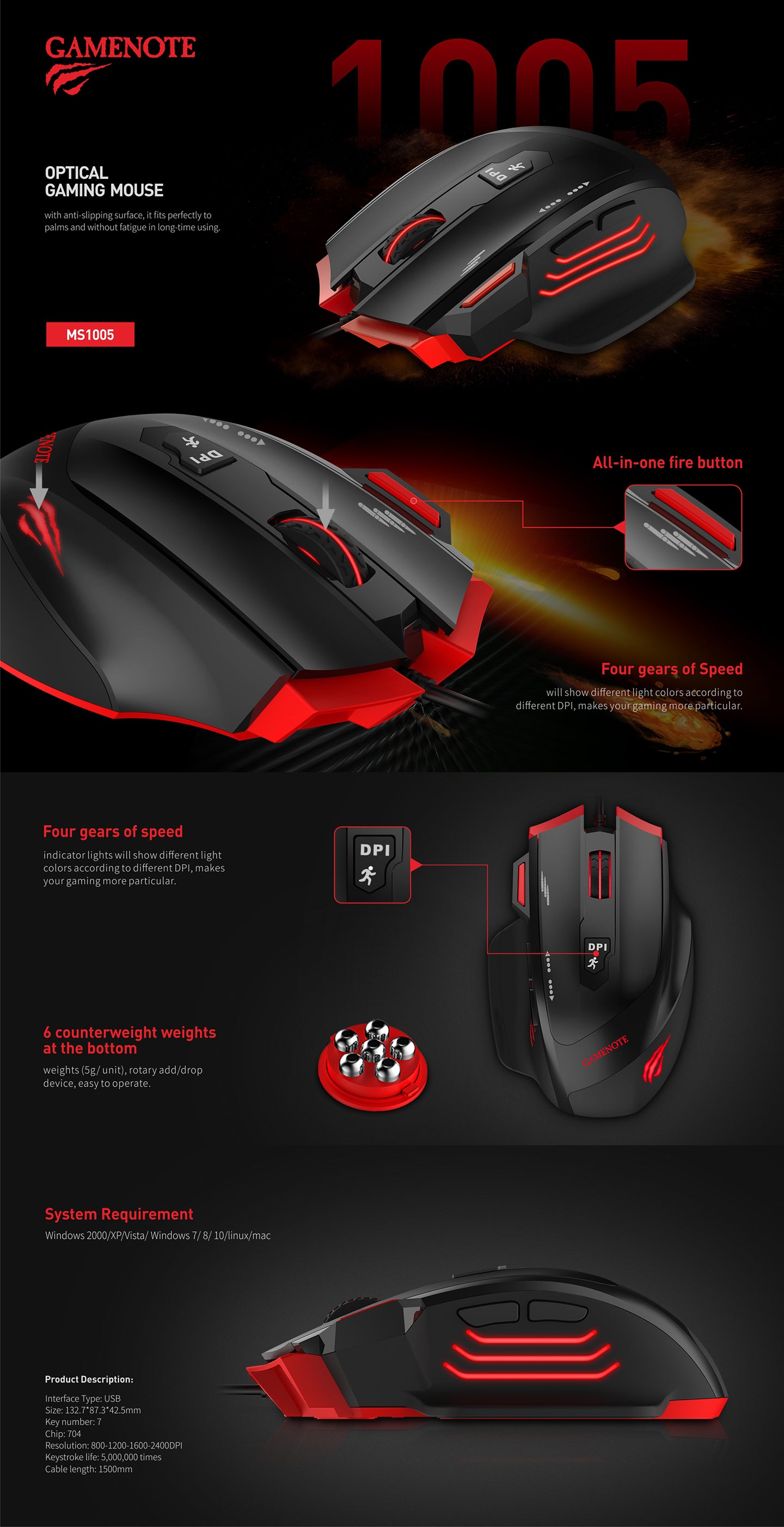 Gaming miš koji će začiniti vaše igre preciznim odzivom, a možete ga i otežati prema svojim zahtjevima. Posebna tipka za pucanje na mišu omogućuje vam brže pucanje u igri, a pomoću DPI tipke možete brzo mijenjati točnost senzora i tako prilagoditi odgovor miša tijekom igranja.