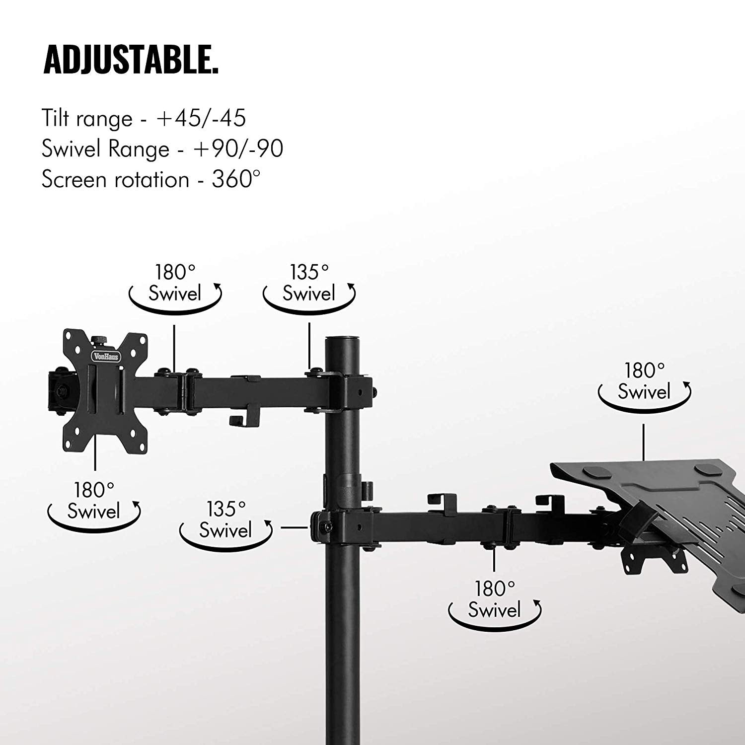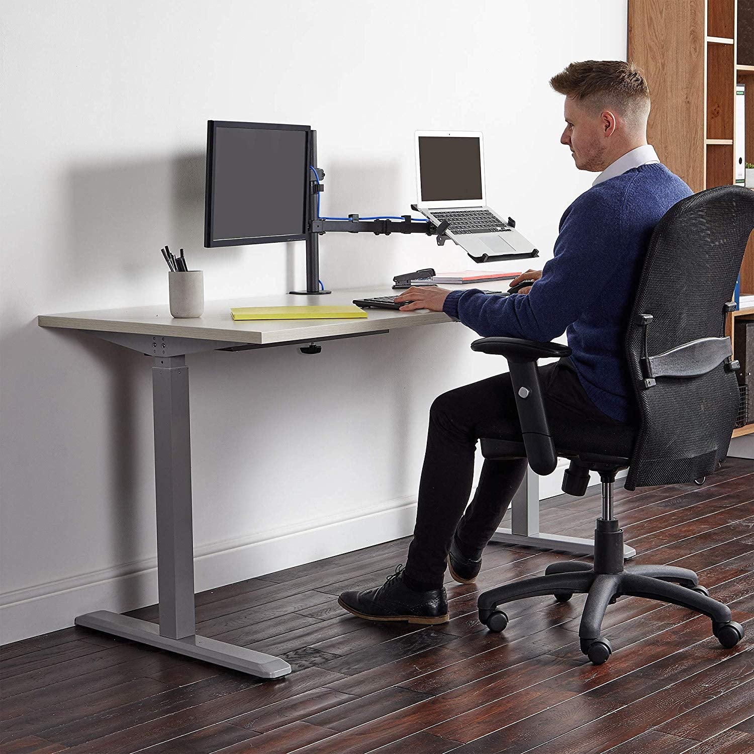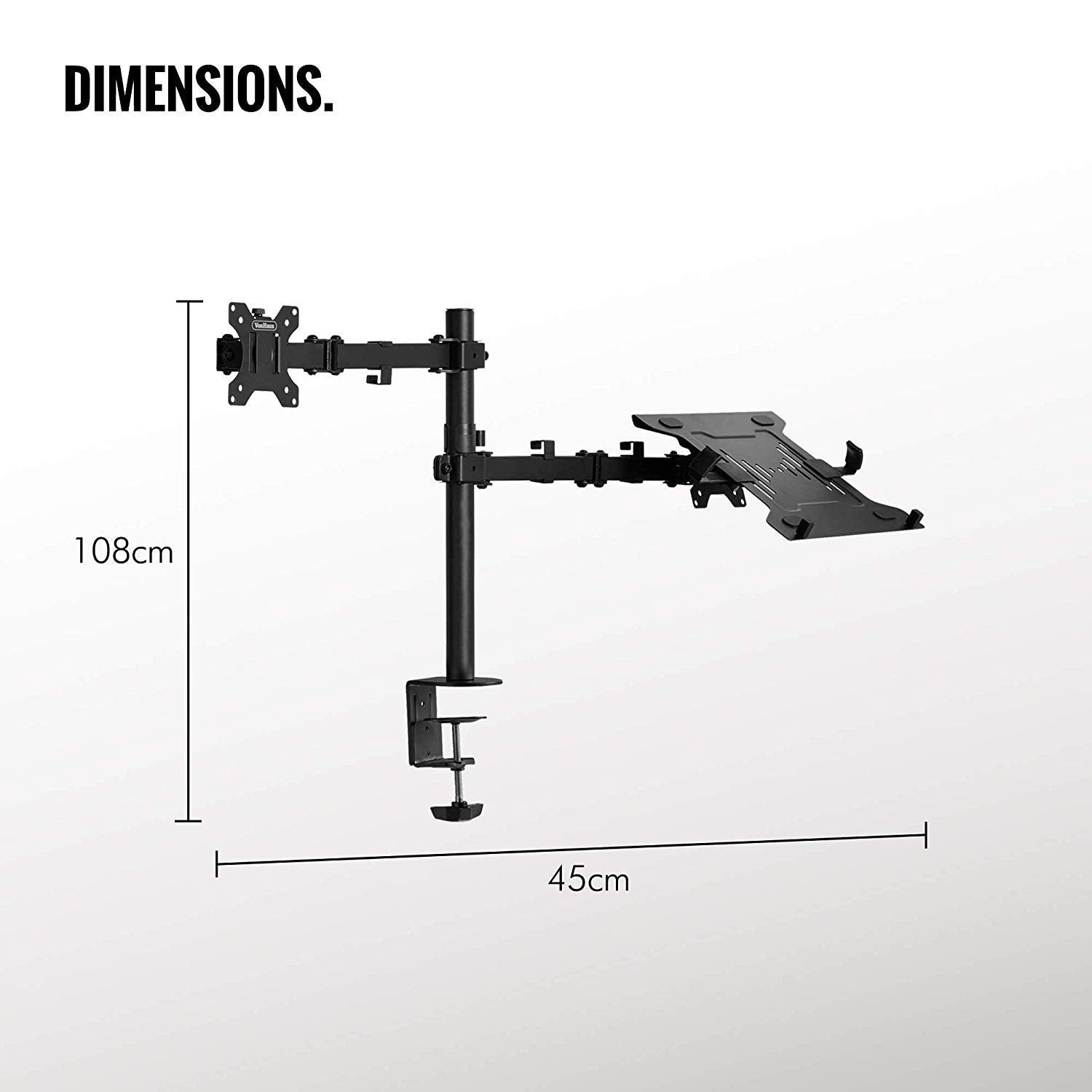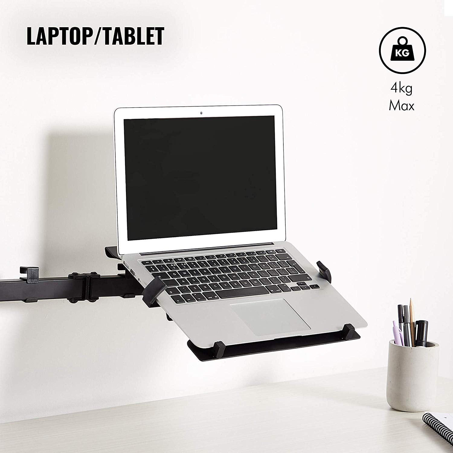 - Montirajte monitor od 13-32 inča (maksimalno 8 kg) i montirajte prijenosno računalo ili tablet (maksimalno 4 kg) na ovaj robusni stolni stalak koji štedi prostor i uživajte u udobnijem, ergonomskom radnom prostoru