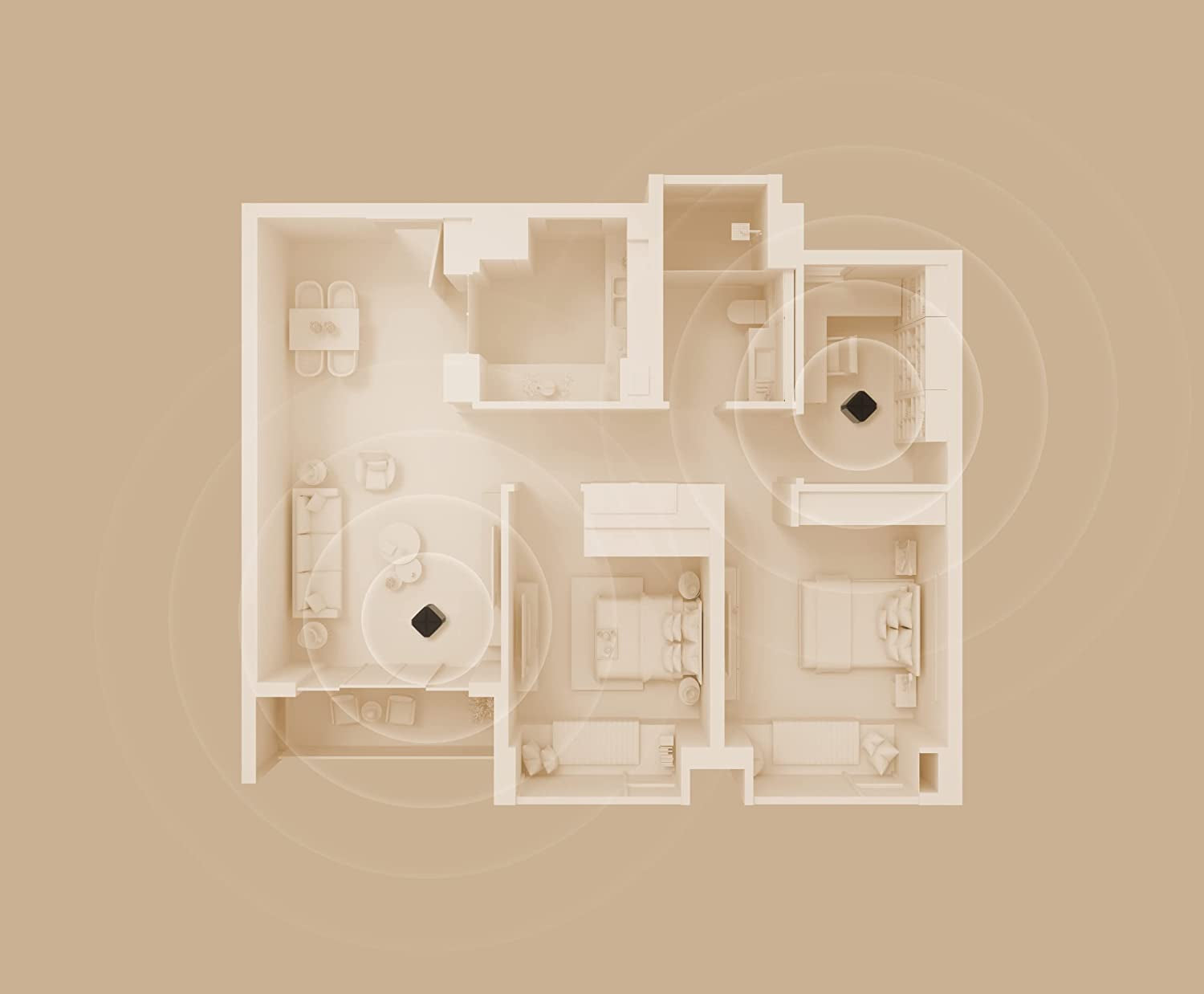 Xiaomi Mesh System AX3000 (2-Pack) spaja se u mesh mrežu koja omogućuje pokrivenost Wi-Fi 6 mrežom u cijelom domu i pokriva više od 370 m2 prostora. Xiaomi Mesh System AX3000 kompatibilan je s mesh mrežama istog modela ili mi Router AX9000, do ukupno 10 uređaja. Signal se automatski i lako premješta između različitih usmjerivača, omogućujući vam pristup bežičnom internetu u svakom trenutku, bez obzira na lokaciju u kući