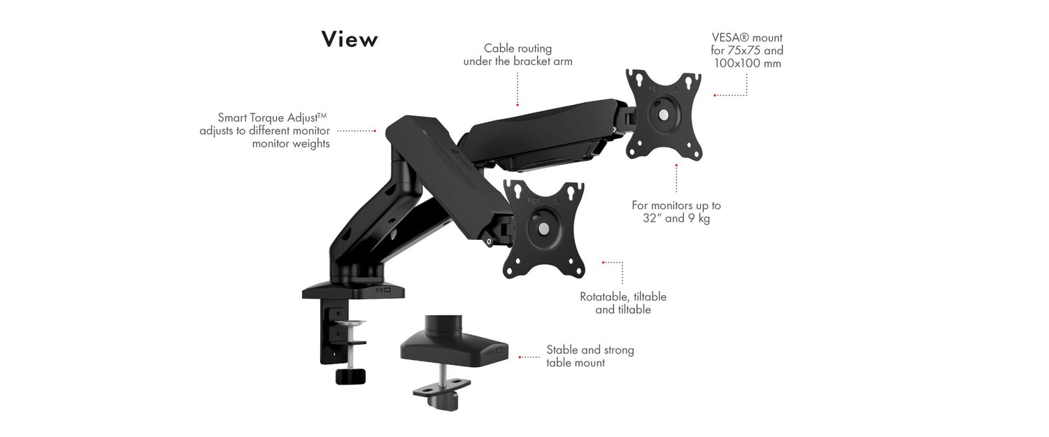 Icybox IB-MS204-T mizni nosilec za dva monitorja do 32" ali teže 9kg