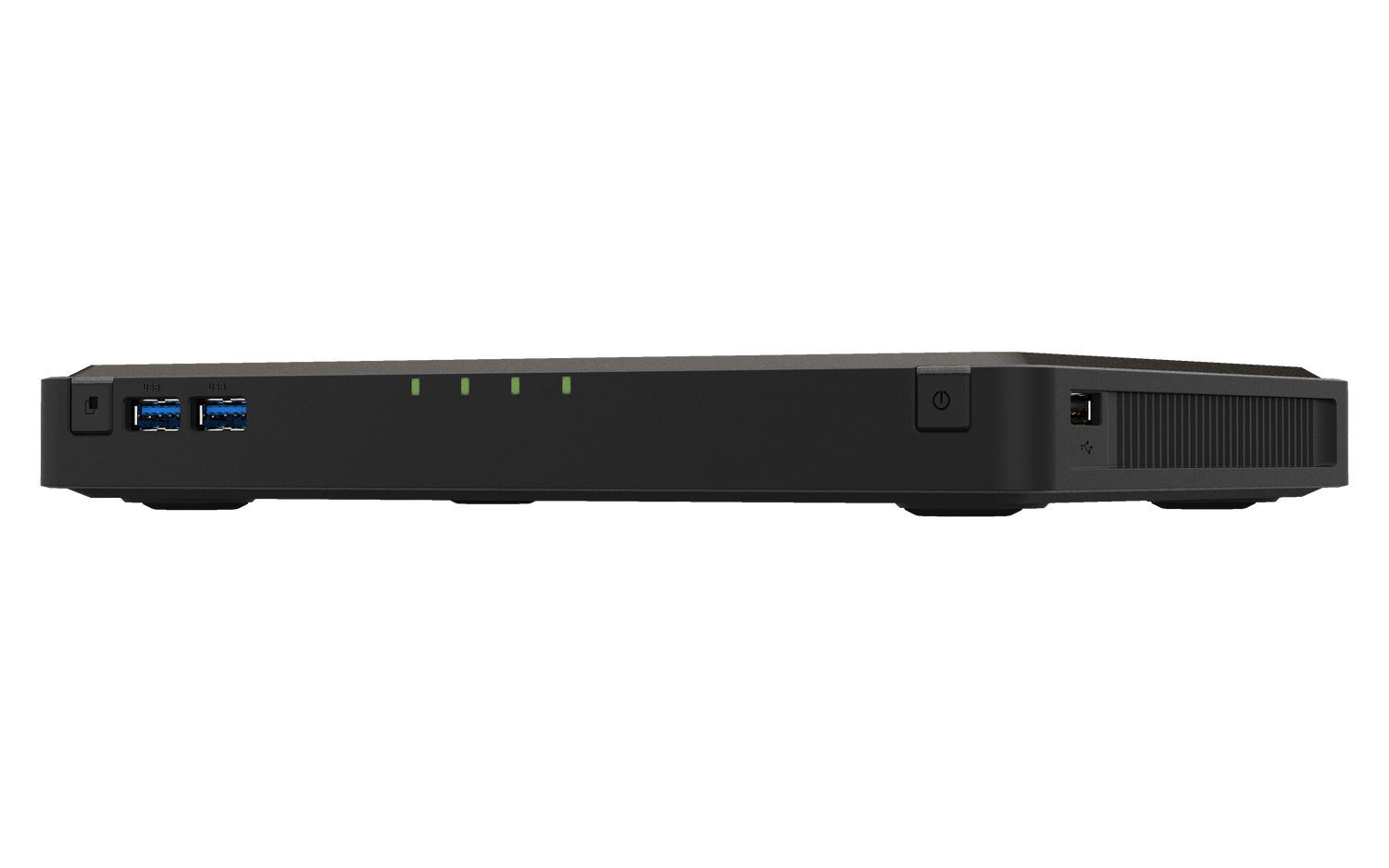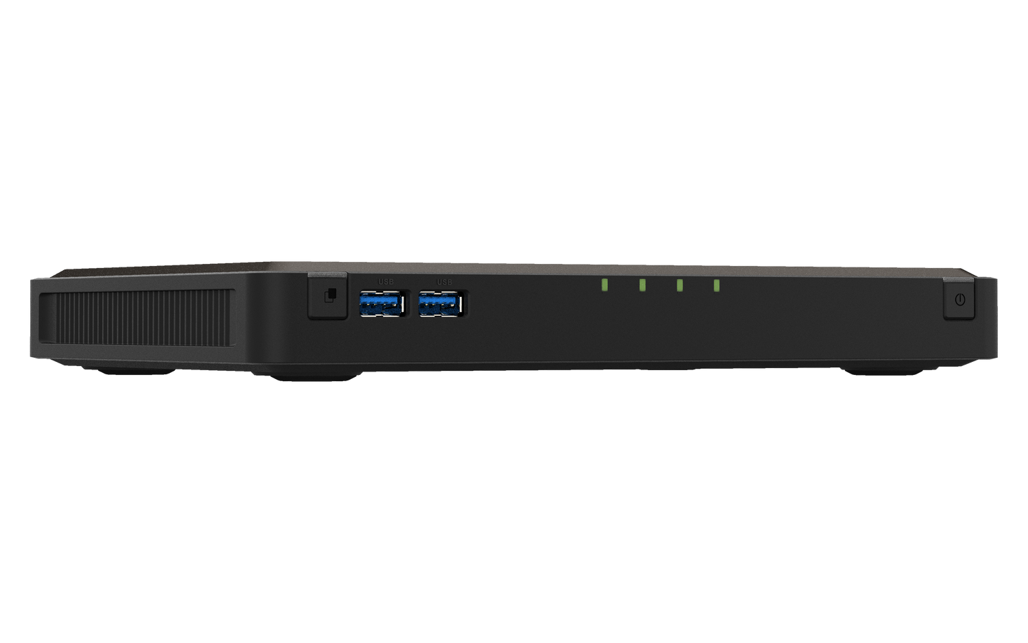 TBS-464, ki ga poganja štirijedrni procesor Intel Celeron N5105 (do 2,9 GHz), ima dva mrežna priključka 2,5 GbE in vrata USB 3.2 Gen1
